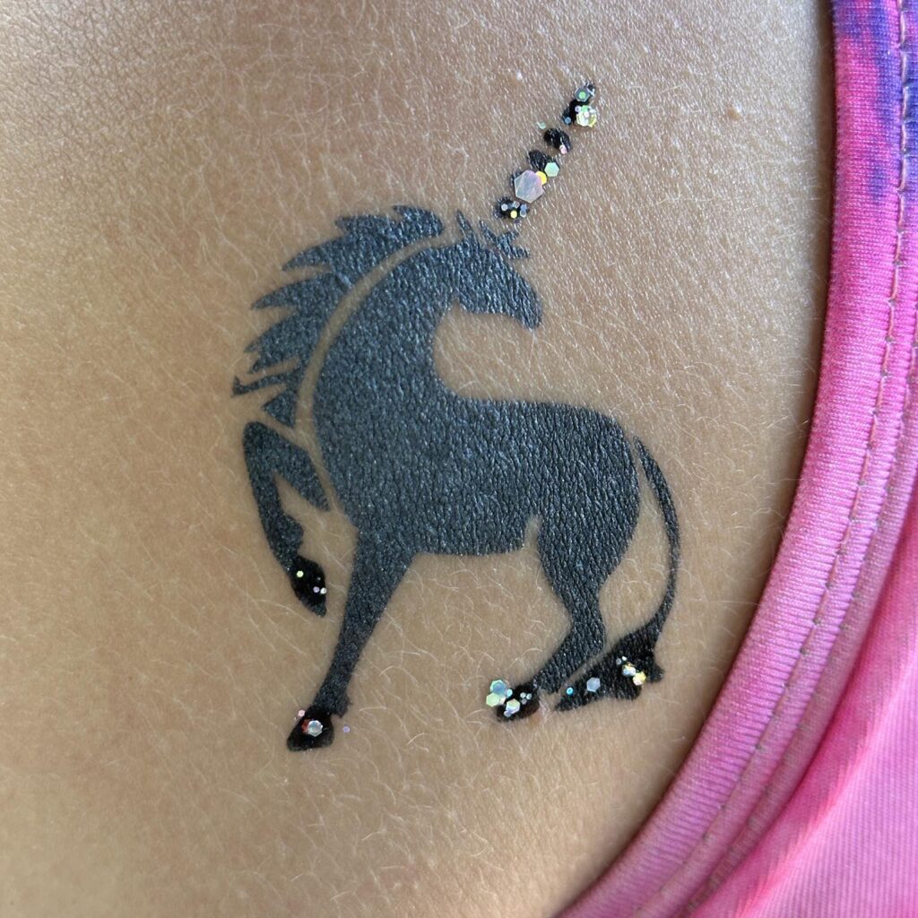 Turime įvairenybę – lipdukų tatuiruočių ir purškiamų tatuiruočių dizainų. Puošiame blizgučiais todėl labai tinkanti pramoga festivaliams.